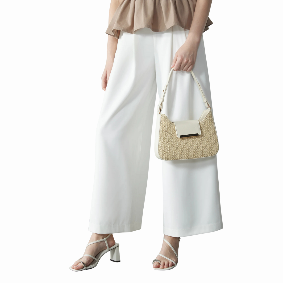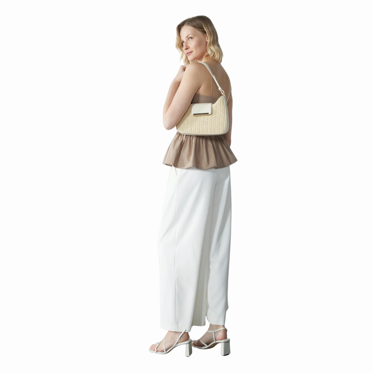 Pagaminta iš šiaudų imitacijos ir dirbtinės odos (PU) derinio, rankinė pasižymi tiek tvirtumu, tiek lengvumu. Magnetinis užsegimas užtikrina patogumą, o viduje esantis pagrindinis skyrius ir vidinė kišenėlė leidžia patogiai susidėti būtiniausius daiktus.