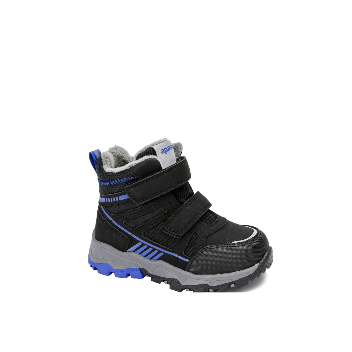 Apawwa S6206R juodi/mėlyni vaikiški batai su šiltu kailiuku viduje. Patvarūs ir patogūs, jie užtikrina komfortą bei šilumą kasdieniam avėjimui šaltuoju metų sezonu.