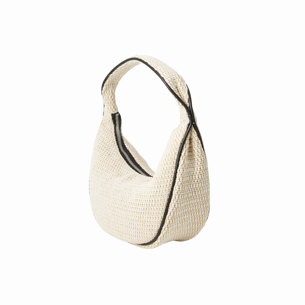 Pagaminta iš tvirto pintinio audinio su tekstiline vidaus apdaila, rankinė yra lengva, tačiau patvari. Kontrastingi juodi kraštų apvadai suteikia subtilų išskirtinumo akcentą. Viduje rasite pagrindinį skyrių ir užtrauktuku užsegamą kišenę, užtikrinančią patogų daiktų organizavimą.