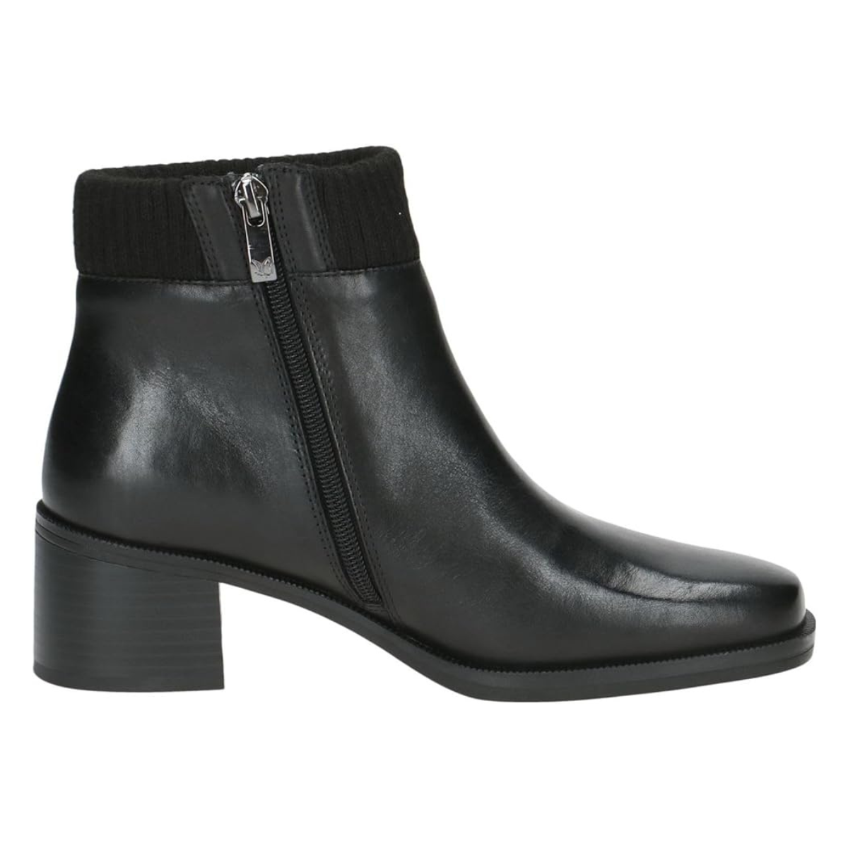 Minkštas megztas viršutinis kraštelis užtikrina jaukumą, o šoninis užtrauktukas leidžia lengvai apsiauti. Vidutinio aukščio kulnas suteikia stabilumo ir moteriškos elegancijos.