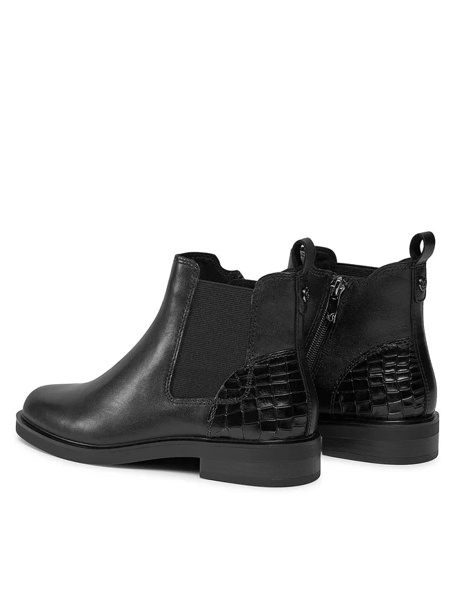 Klasikinio dizaino Caprice moteriški aulinukai – elegantiškas pasirinkimas kasdienai ir biurui. Pagaminti iš kokybiškos odos, jie pasižymi paprastu, tačiau išraiškingu stiliumi, kurį pabrėžia subtilus pintas odos raštas kulno srityje.