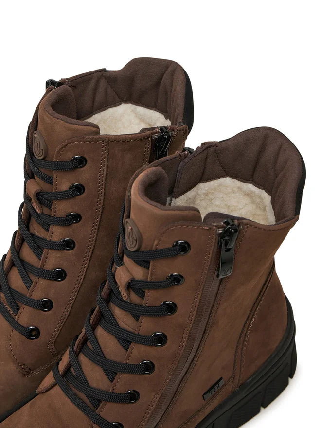 Modelis turi raištelius ir šoninį užtrauktuką, todėl lengva pritaikyti ir apsiauti. Storas, amortizuojantis padas užtikrina stabilumą ir komfortą einant net šaltu ar šlapiu oru.