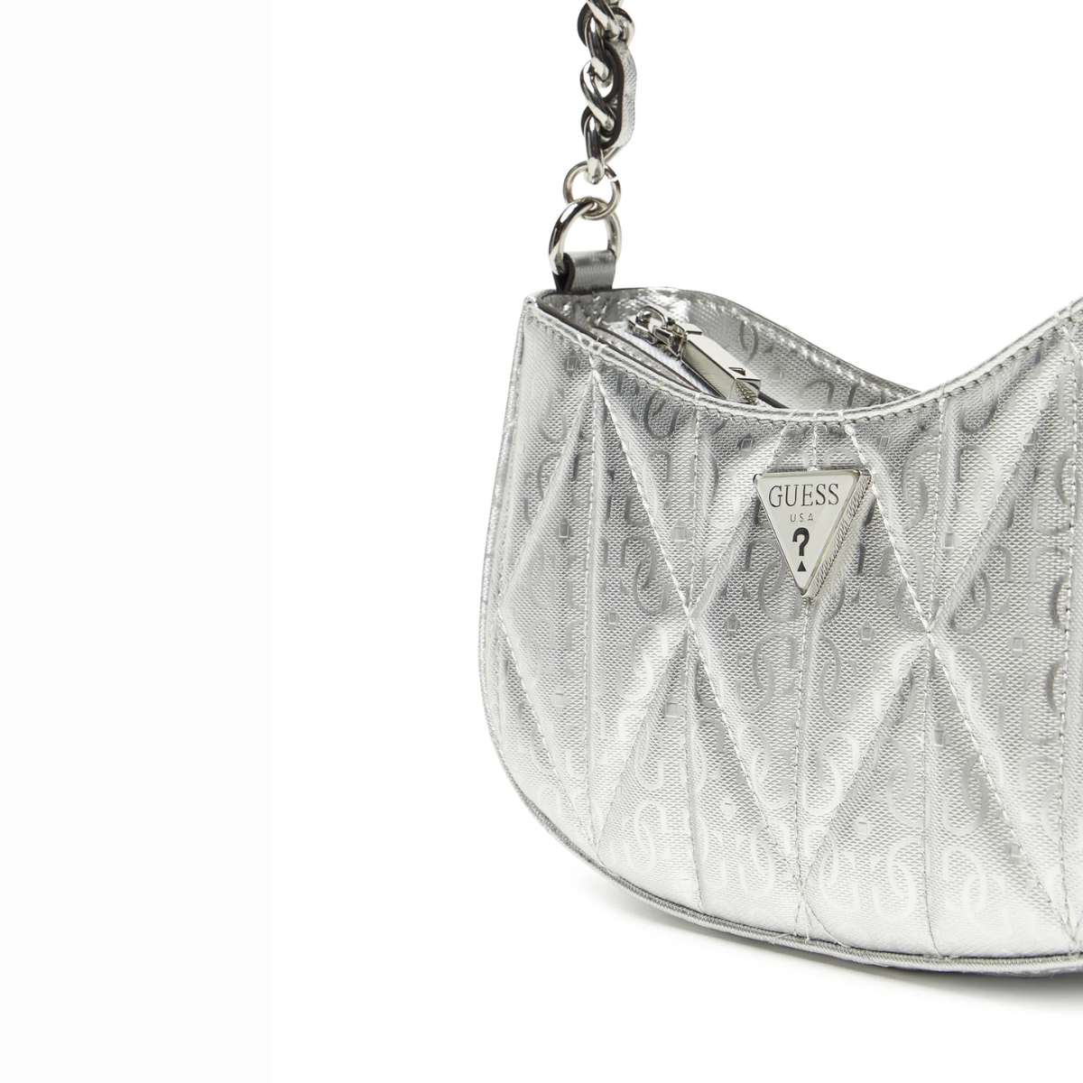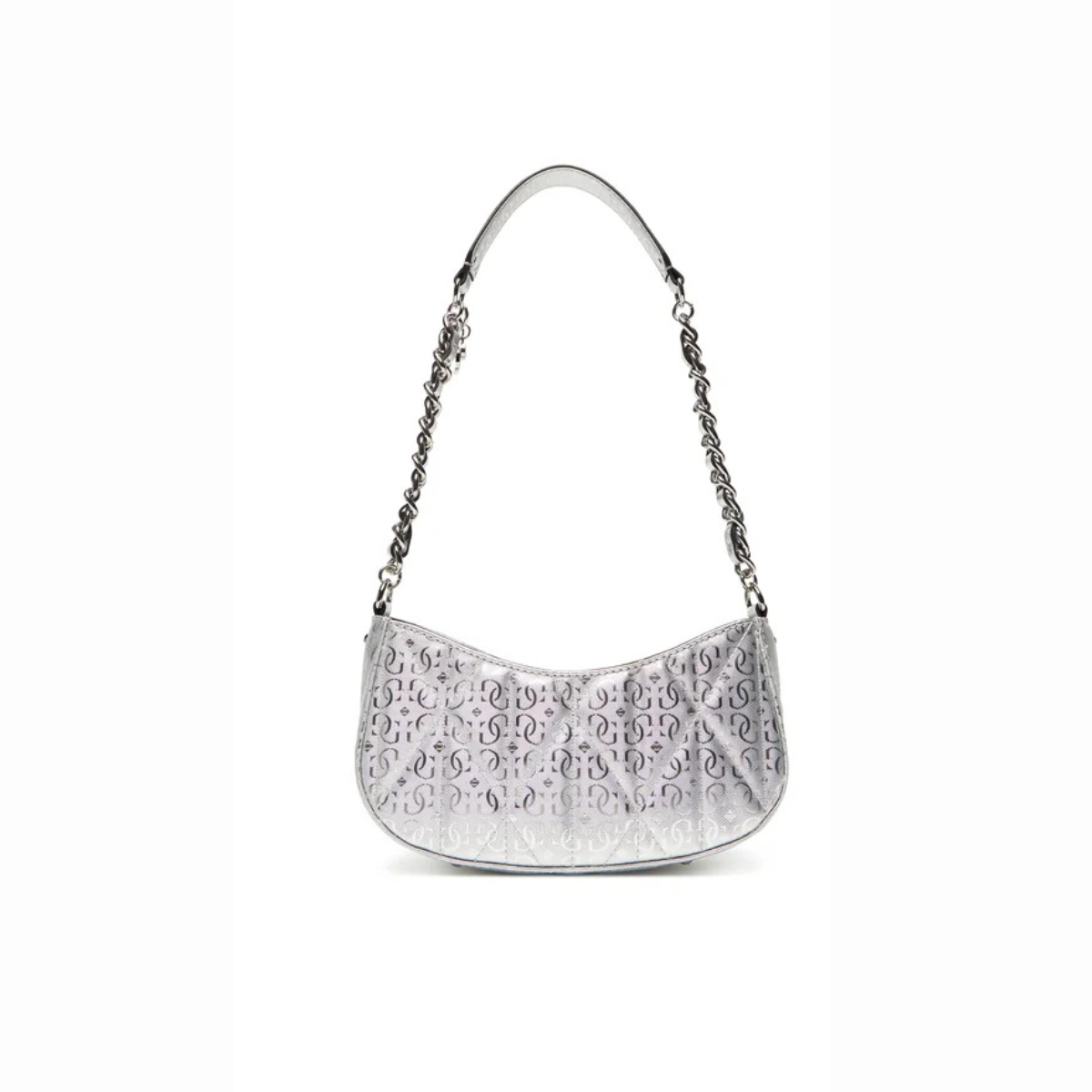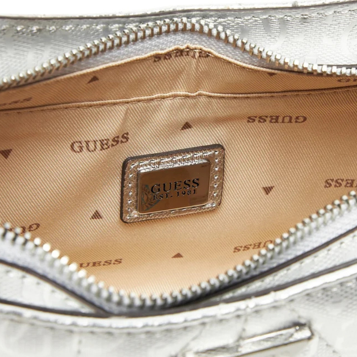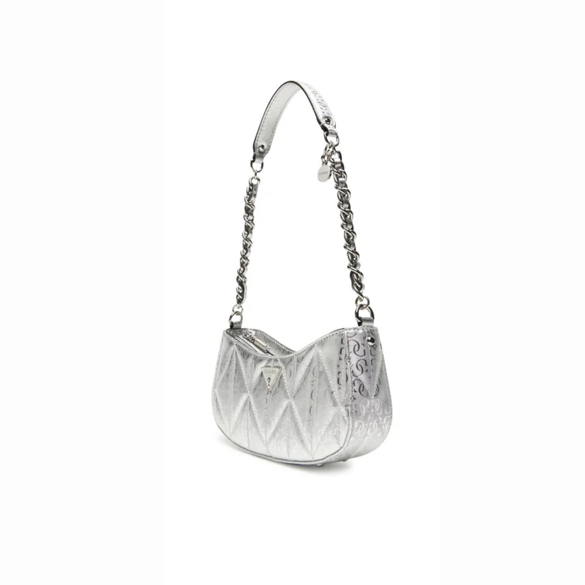 Guess Aldina HWGY96 63170 – šiuolaikiška ir stilinga mažo dydžio rankinė, pasižyminti futuristiniu blizgiu dizainu ir „Guess“ logotipų ornamentais. Sidabrinės spalvos paviršius suteikia išskirtinio žavesio ir modernumo, todėl ši rankinė puikiai tinka tiek kasdieniam įvaizdžiui, tiek vakariniam pasipuošimui.