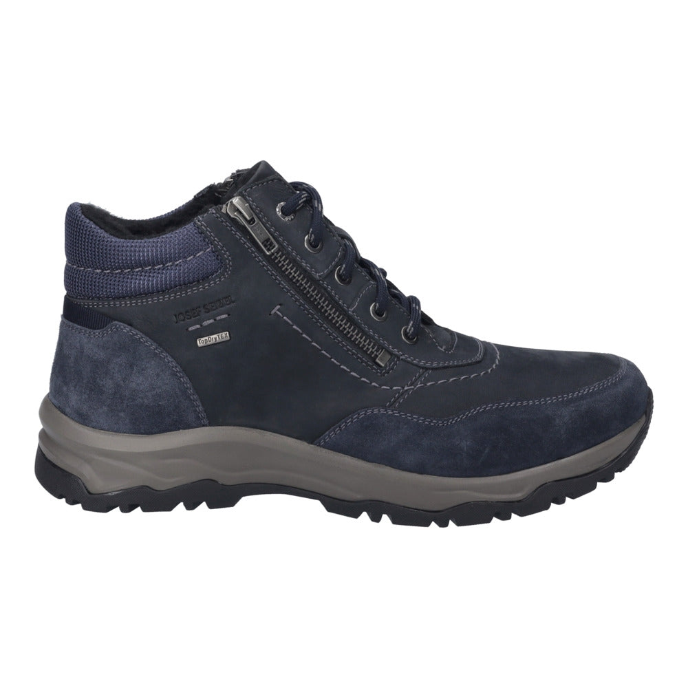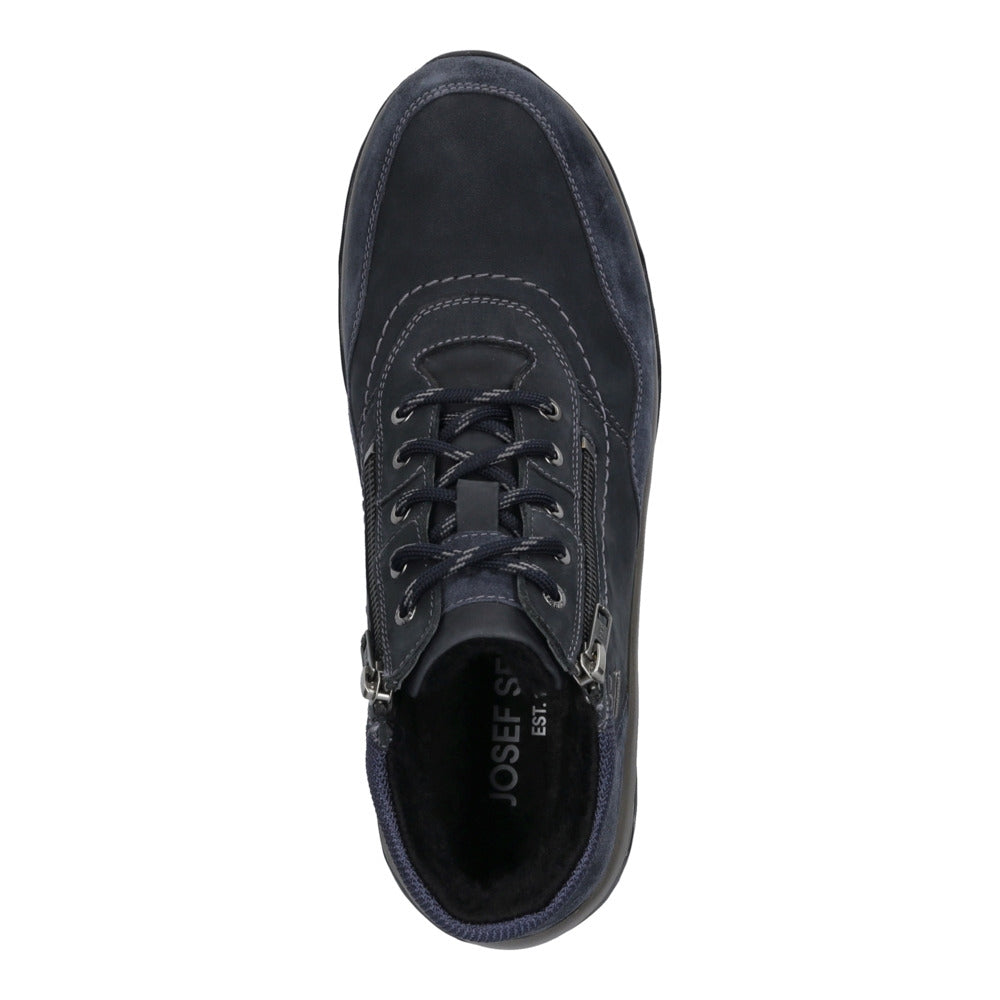 JOSEF SEIBEL Leroy 57 – modernūs ir patikimi vyriški batai, sukurti kasdieniam komfortui ir ilgaamžiškumui. Elegantiška indigo (tamsiai mėlyna) spalva suteikia modeliui išskirtinį charakterį, o aukštos kokybės natūrali karvės oda užtikrina patvarumą bei puikų prisitaikymą prie pėdos.