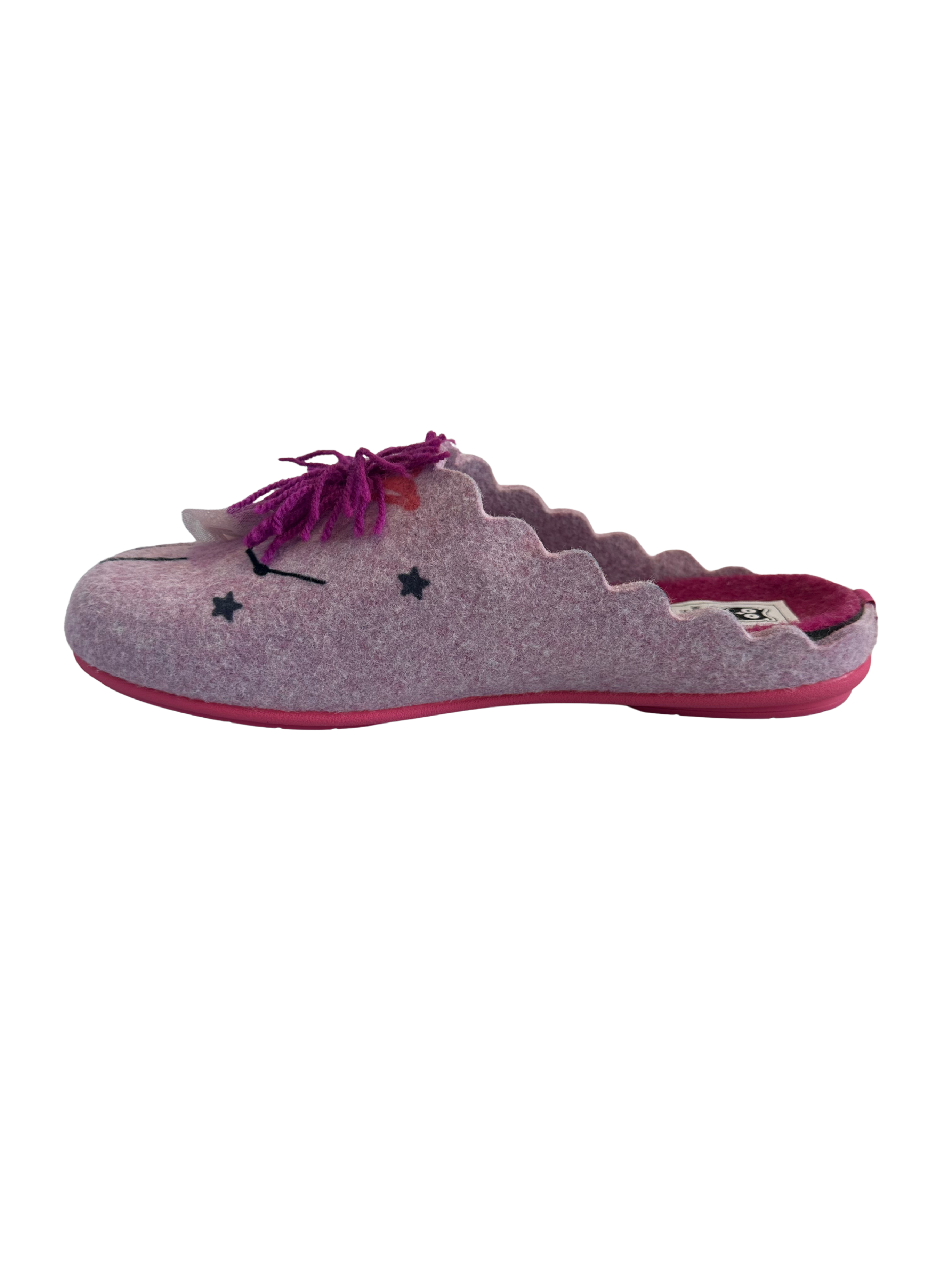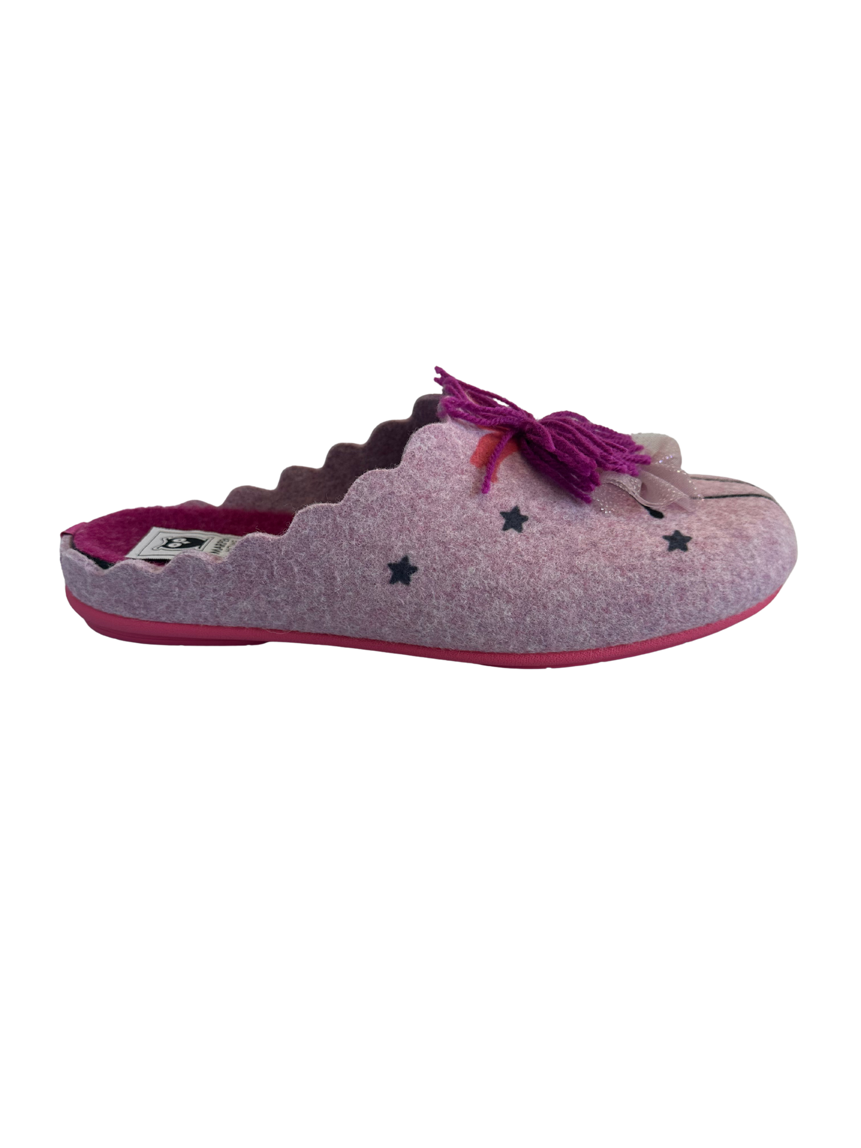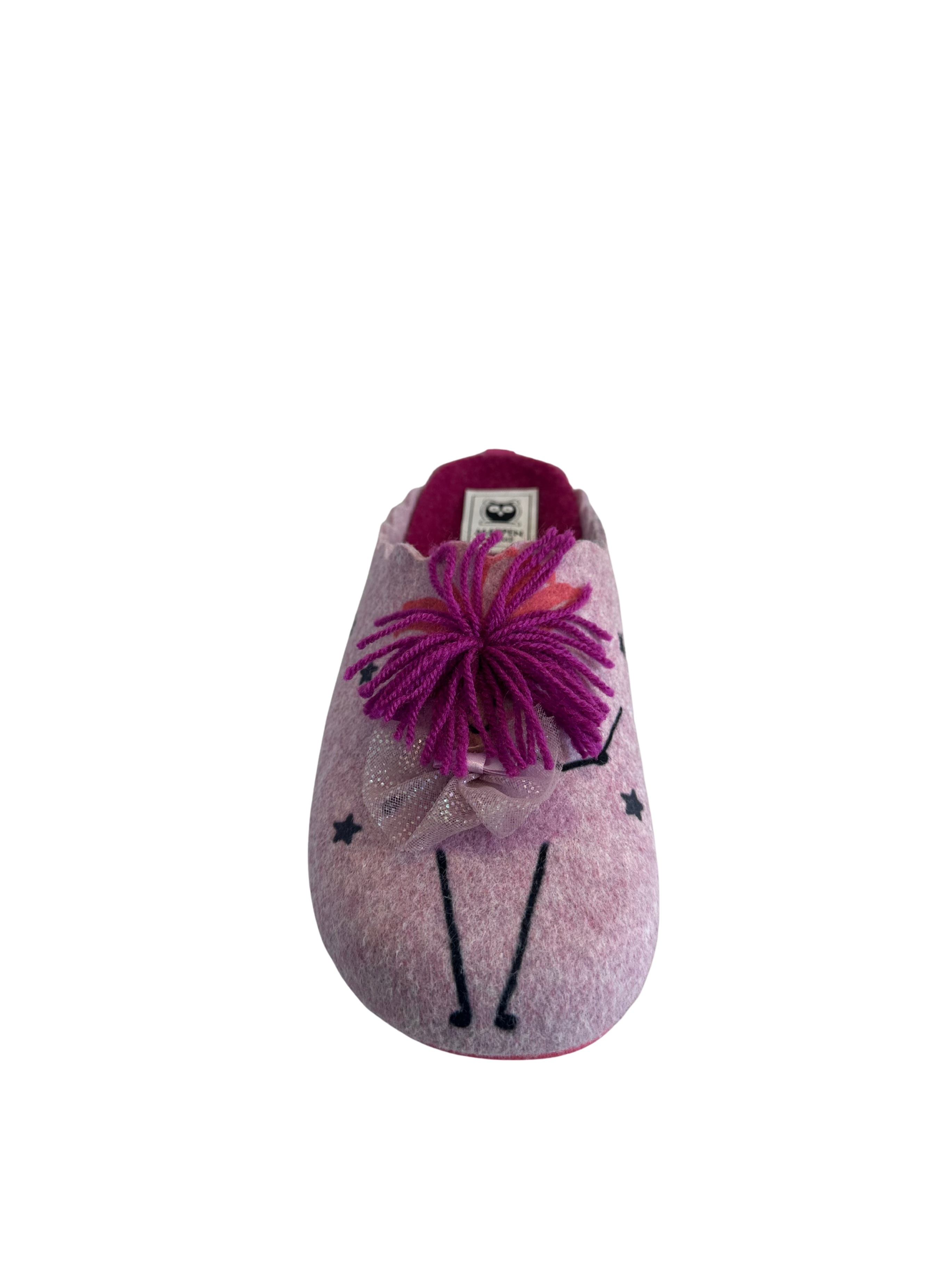 Marpen moteriškos rožinės šlepetės su dekoratyviniu kutu ir užrašu „May all your wishes come true“ („Tegul visi tavo norai išsipildo“). Patogios, minkštos ir stilingos kasdieniam avėjimui namuose.