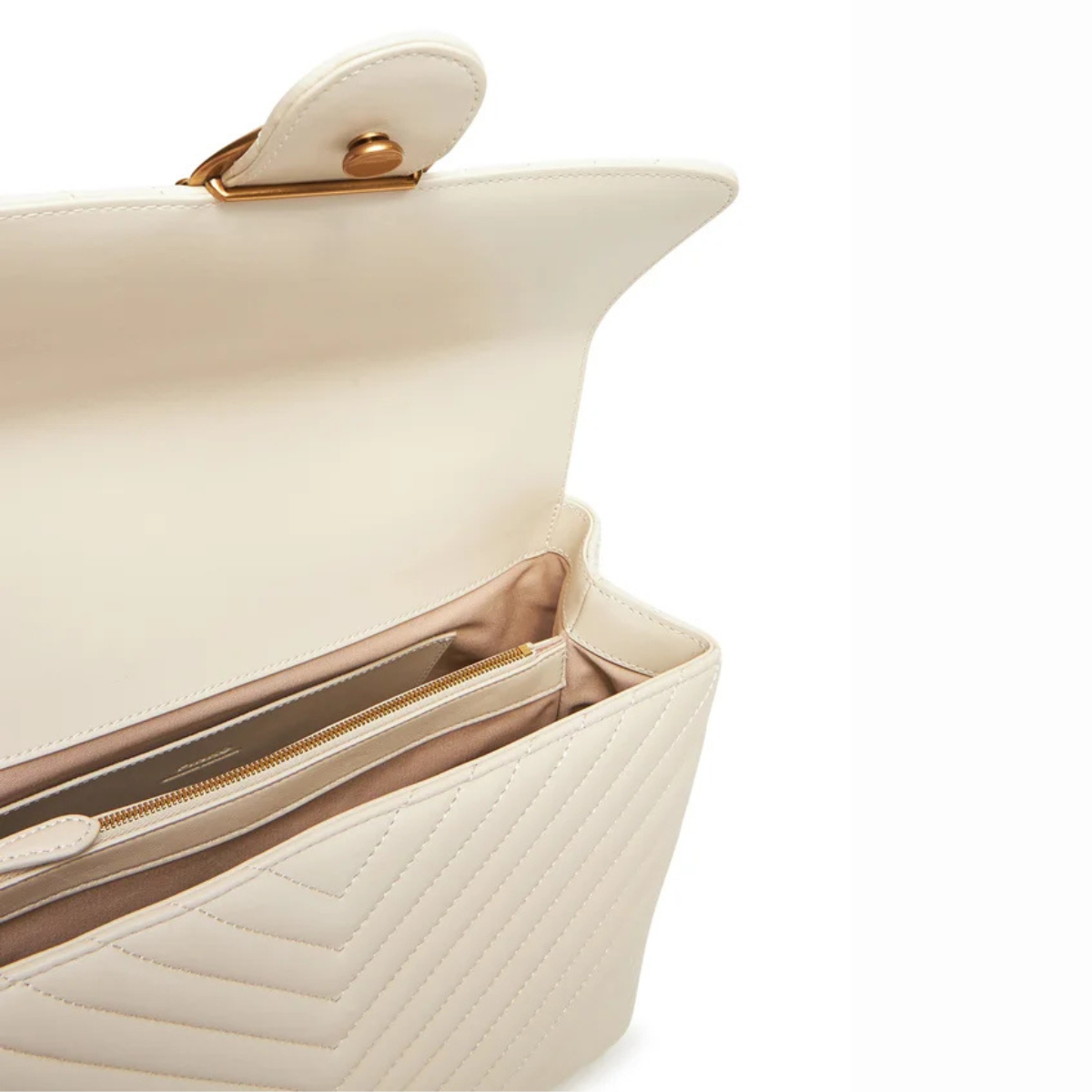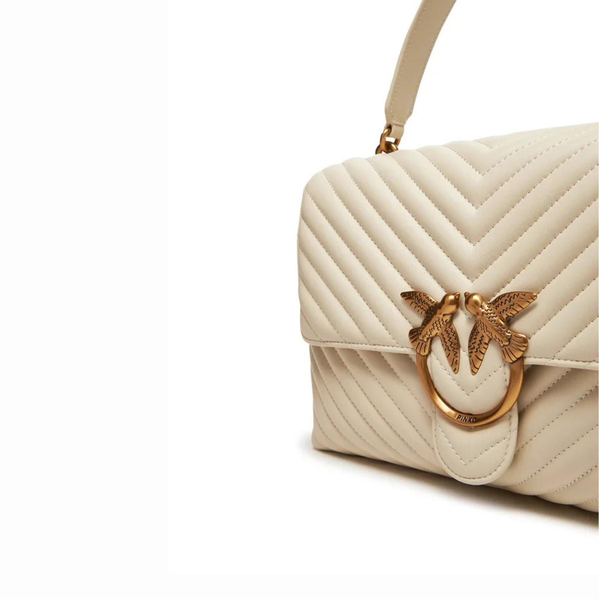 Pinko Love Lady Puff Big CL – elegantiška ir prabangi rankinė, kuri išsiskiria savo moderniu, klasikinės formos dizainu ir subtilia baltos spalvos oda. Tai išskirtinis aksesuaras, puikiai tinkantis tiek kasdieniam įvaizdžiui, tiek ypatingoms progoms.