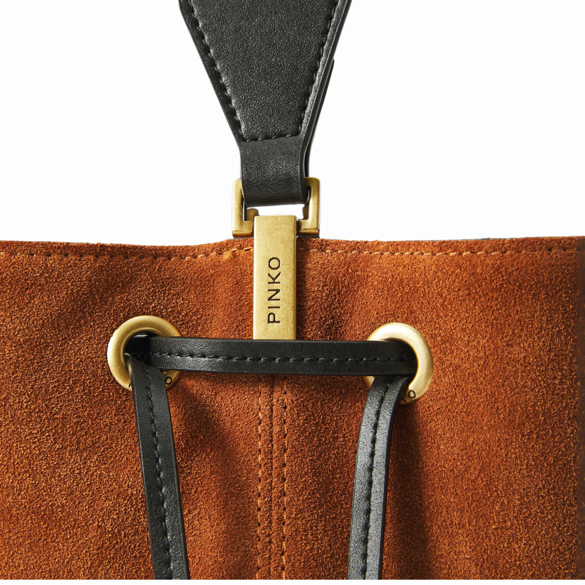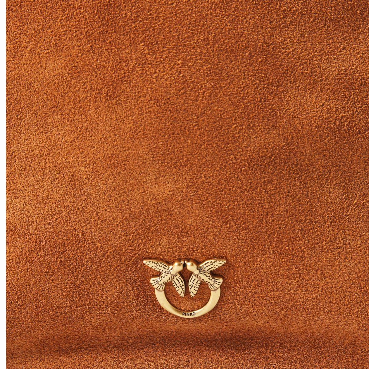 Ši Pinko rankinė – elegantiškas pasirinkimas moterims, vertinančioms natūralias medžiagas ir subtilų prabangos pojūtį. Rankinė pagaminta iš aukštos kokybės zomšinės odos, kuri pasižymi švelniu paviršiumi ir šiltu rudos atspalvio tonusu.