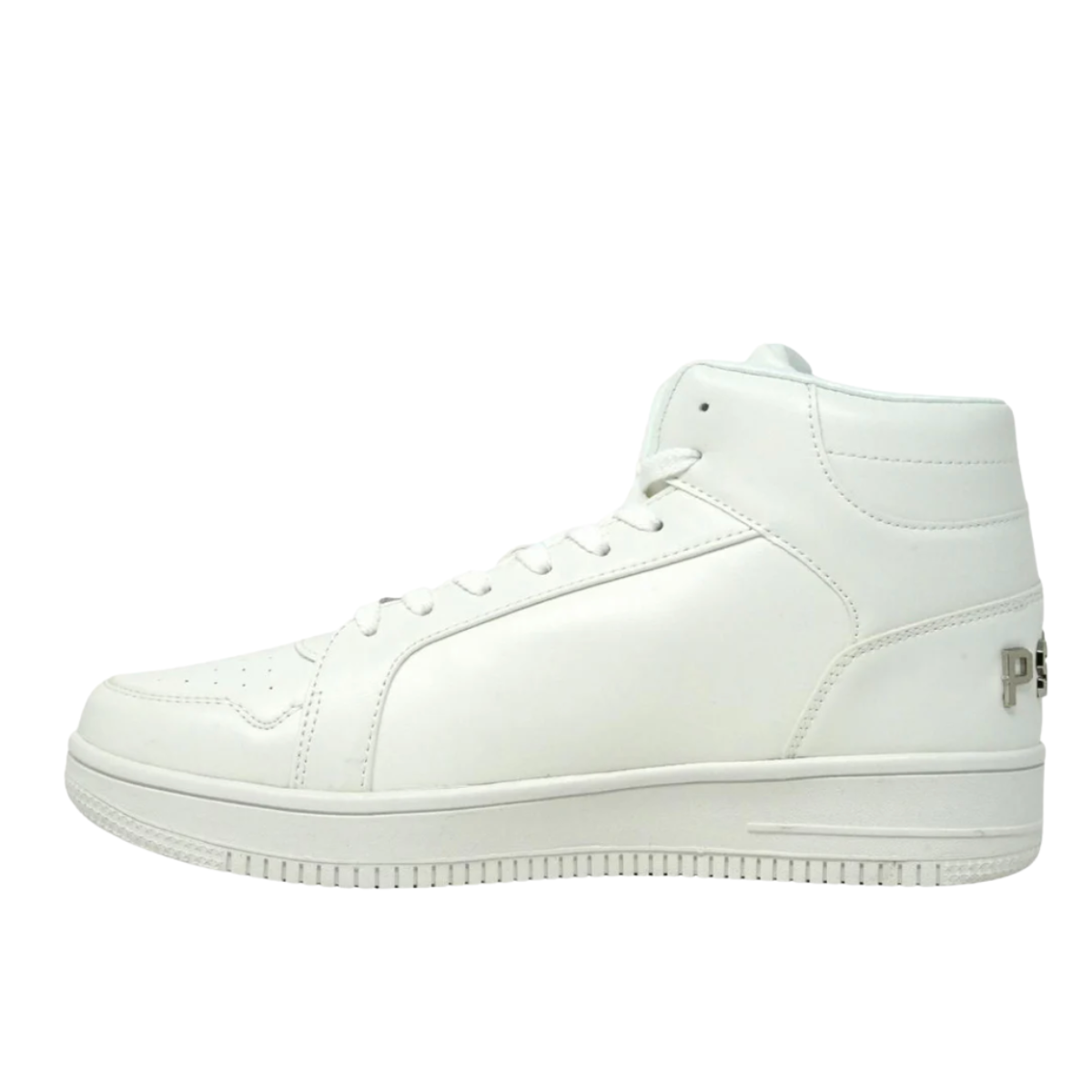 Išskirtinio dizaino Plein Sport batai pasižymi modernia išvaizda ir sportinės prabangos pojūčiu. Šis baltos spalvos modelis išsiskiria švariu siluetu ir metaliniu Plein Sport logotipu šone, suteikiančiu prabangos bei išskirtinumo.