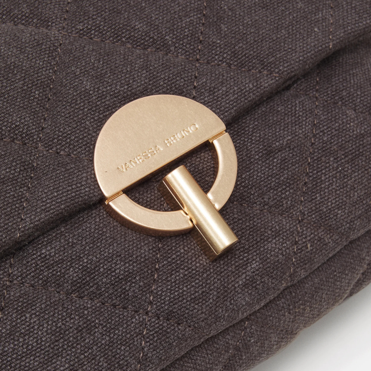 Vanessa Bruno moteriška rankinė – elegantiškas, prancūziško žavesio įkvėptas aksesuaras, pasižymintis minimalistiniu, tačiau rafinuotu dizainu. Pagaminta iš minkštos, dygsniuotos tekstilės, ji išsiskiria auksinės spalvos metalinėmis detalėmis ir subtiliu „Vanessa Bruno“ logotipu ant užsegimo.